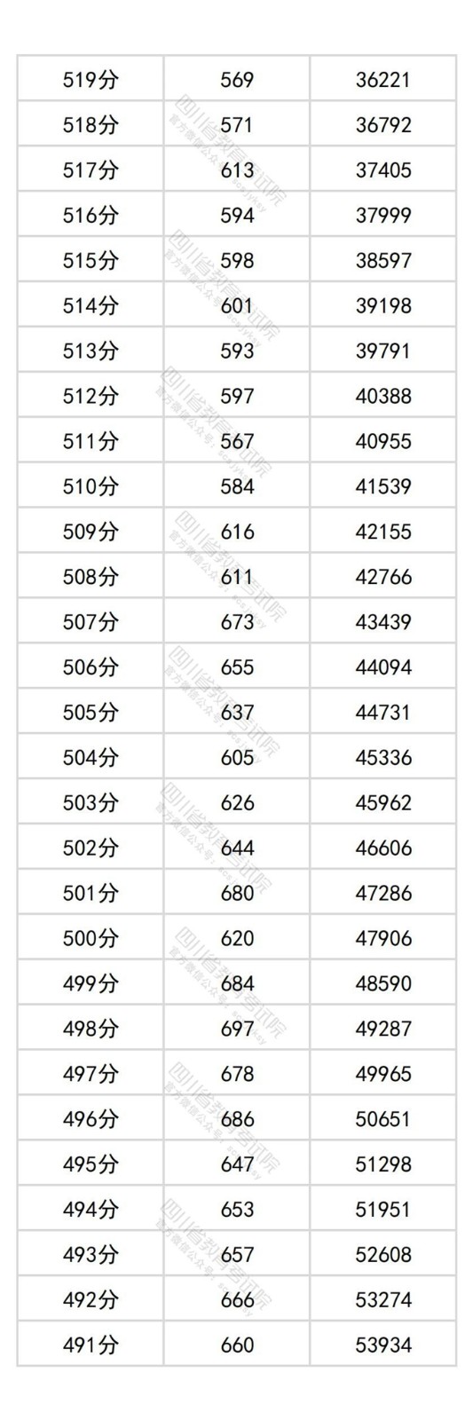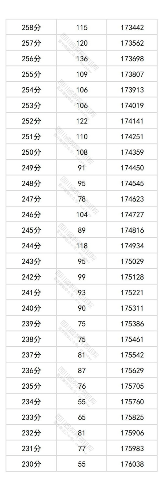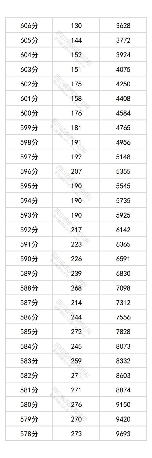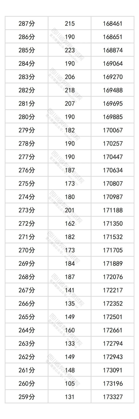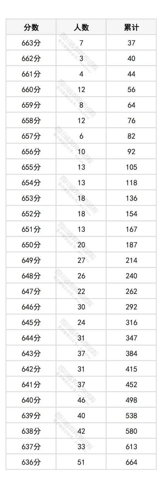 四川省2025年普通高考历史类成绩分段统计表