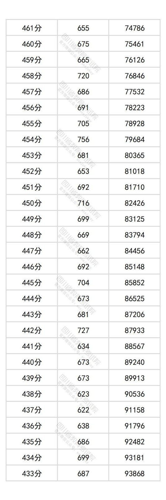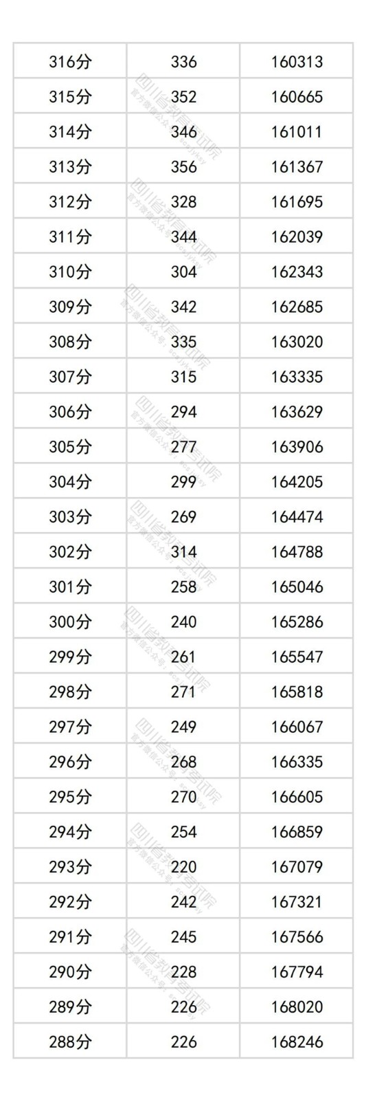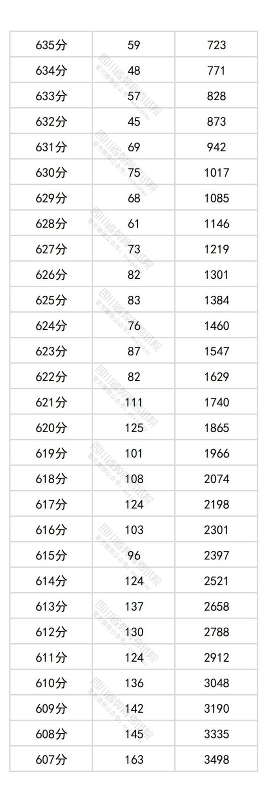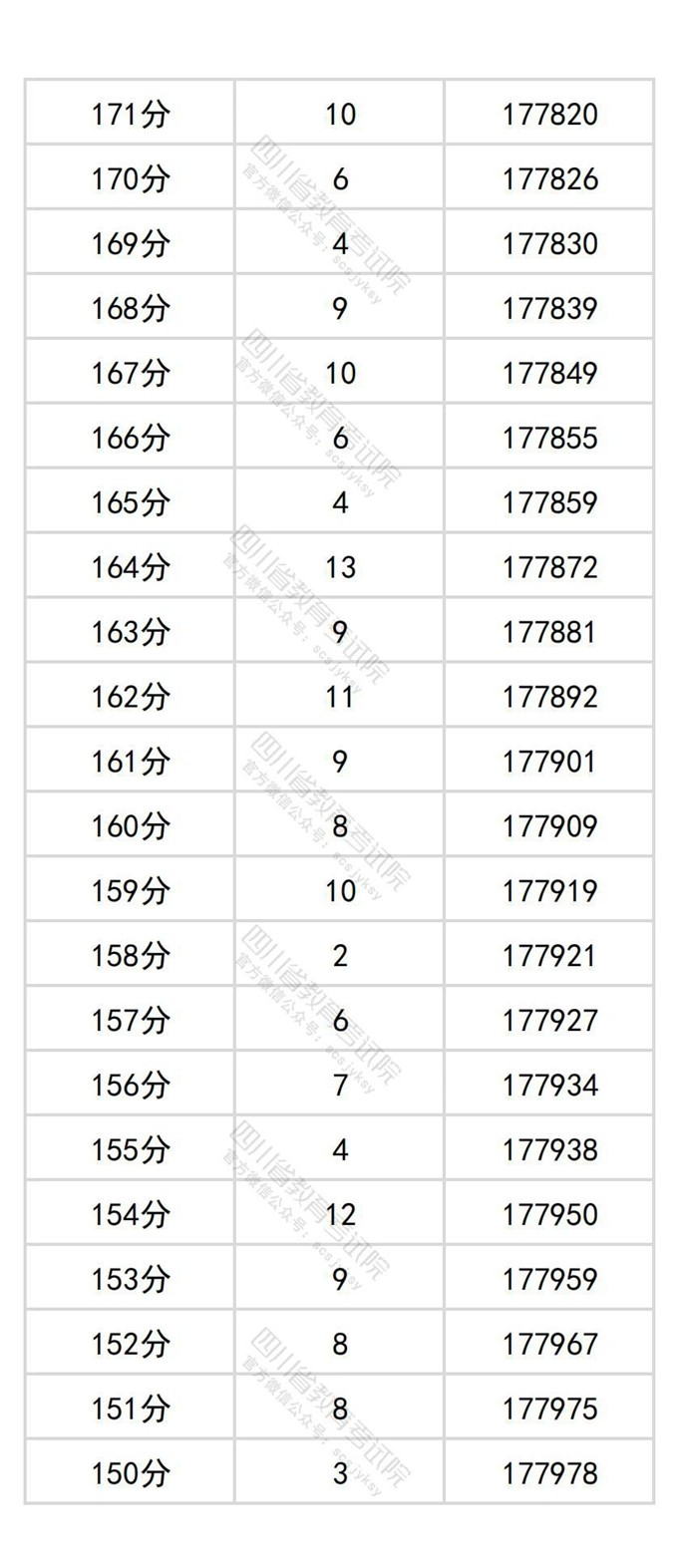 四川省2025年普通高考历史类成绩分段统计表