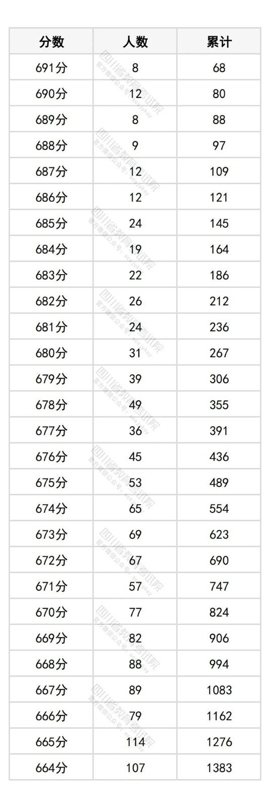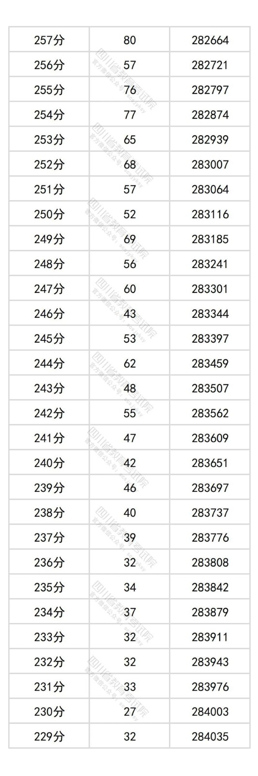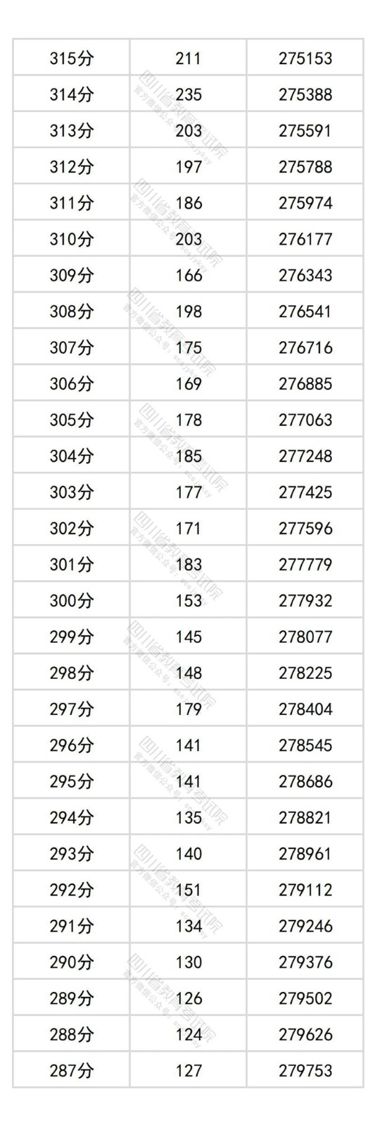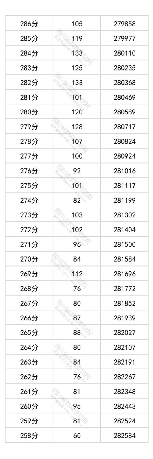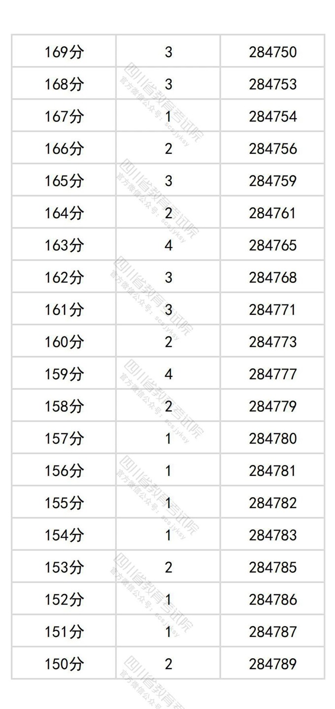 四川省2025年普通高考物理类成绩分段统计表