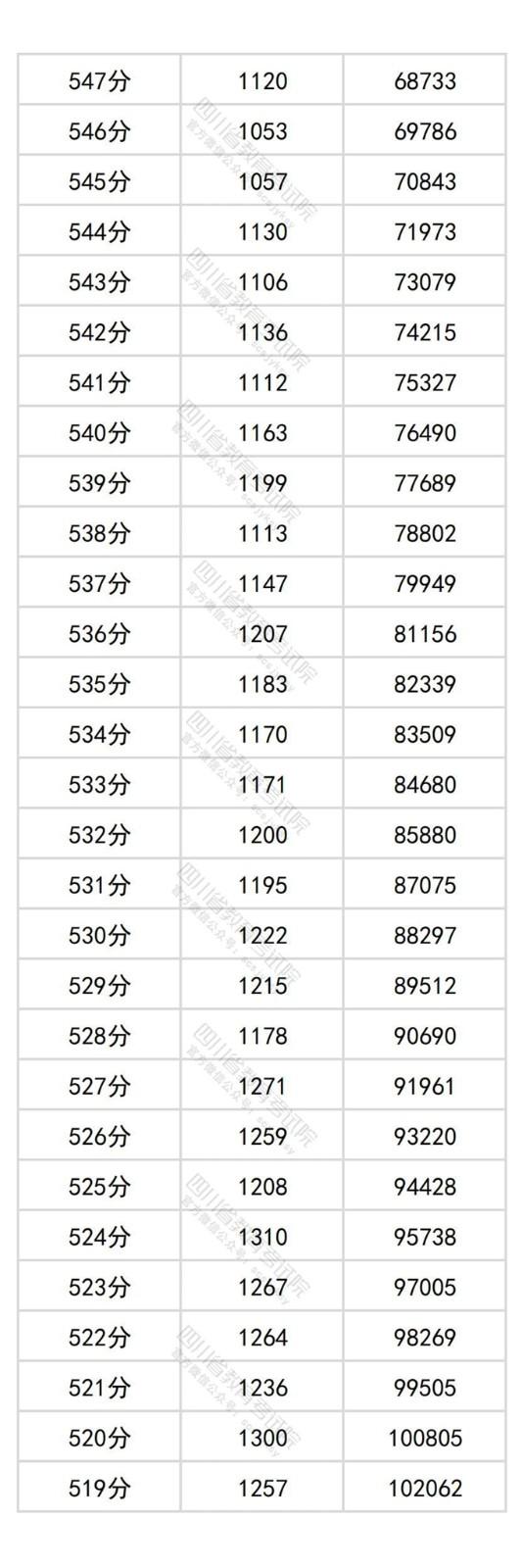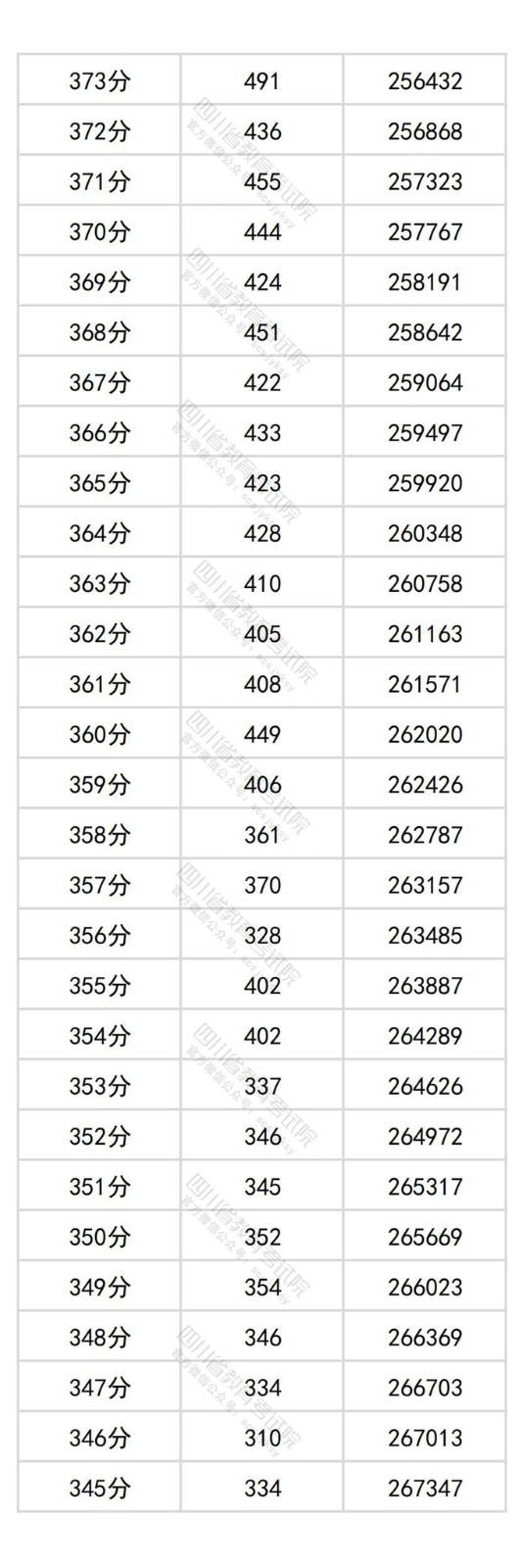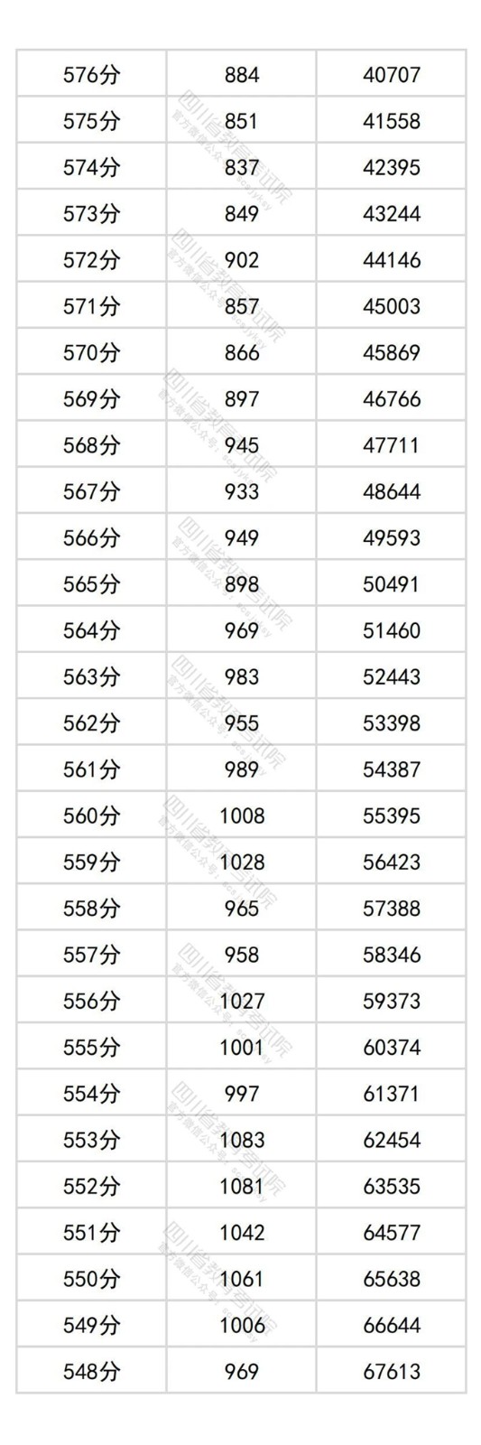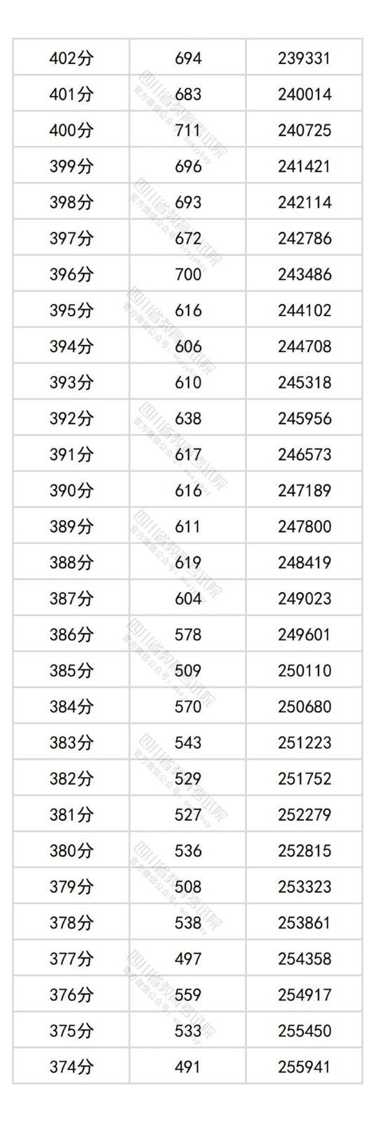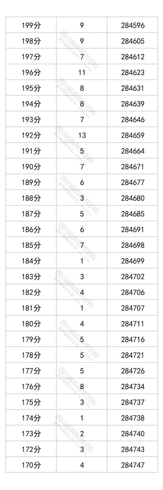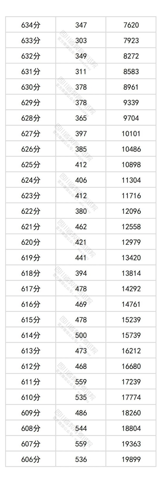 四川省2025年普通高考物理类成绩分段统计表