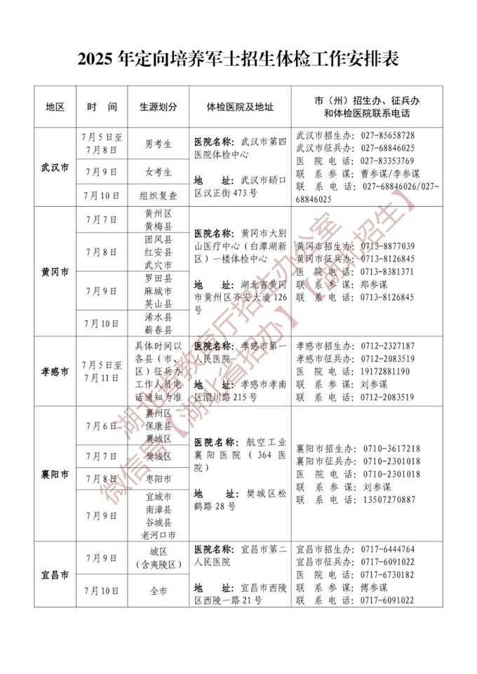 湖北:2025年定向培养军士招生体检名单确定原则和有关注意事项公告