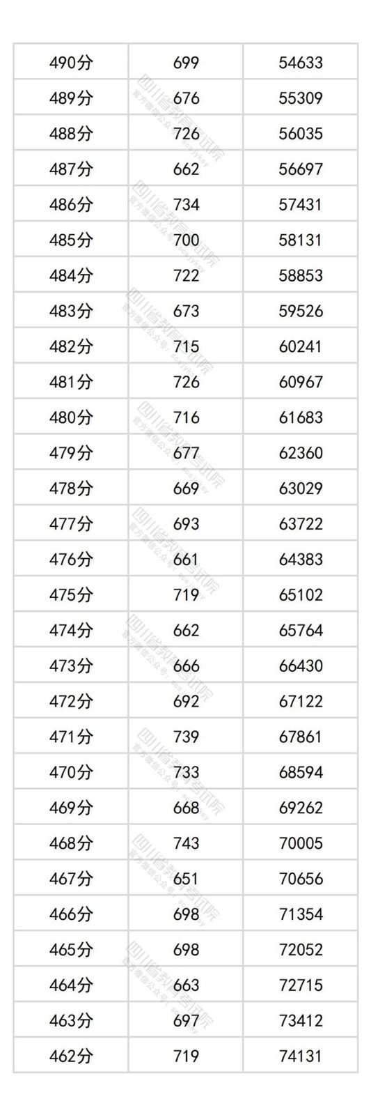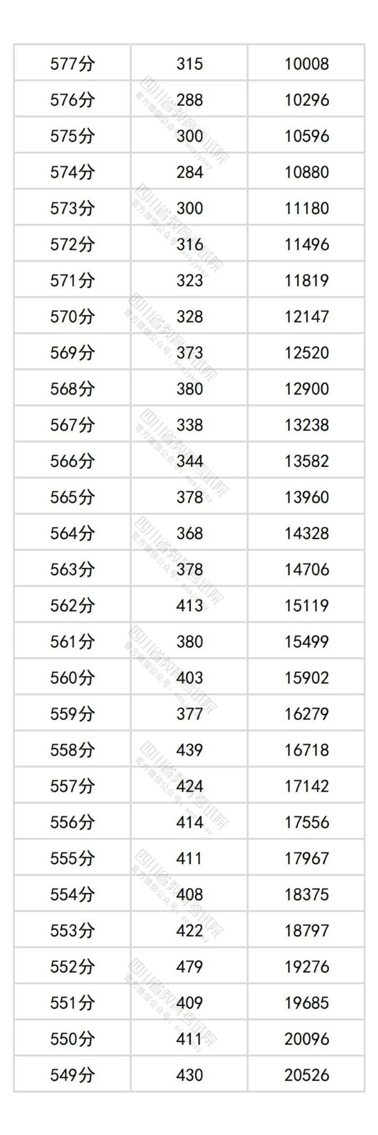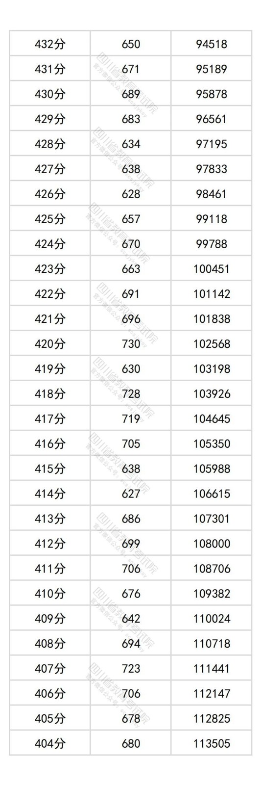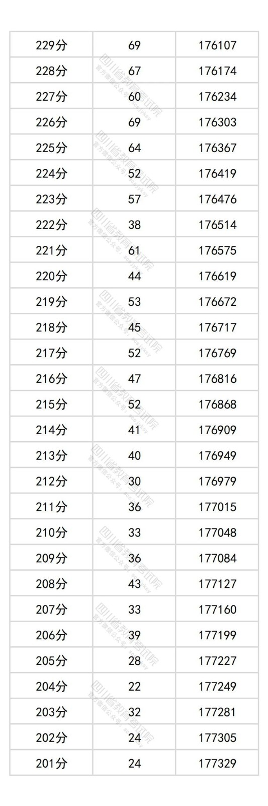四川省2025年普通高考历史类成绩分段统计表