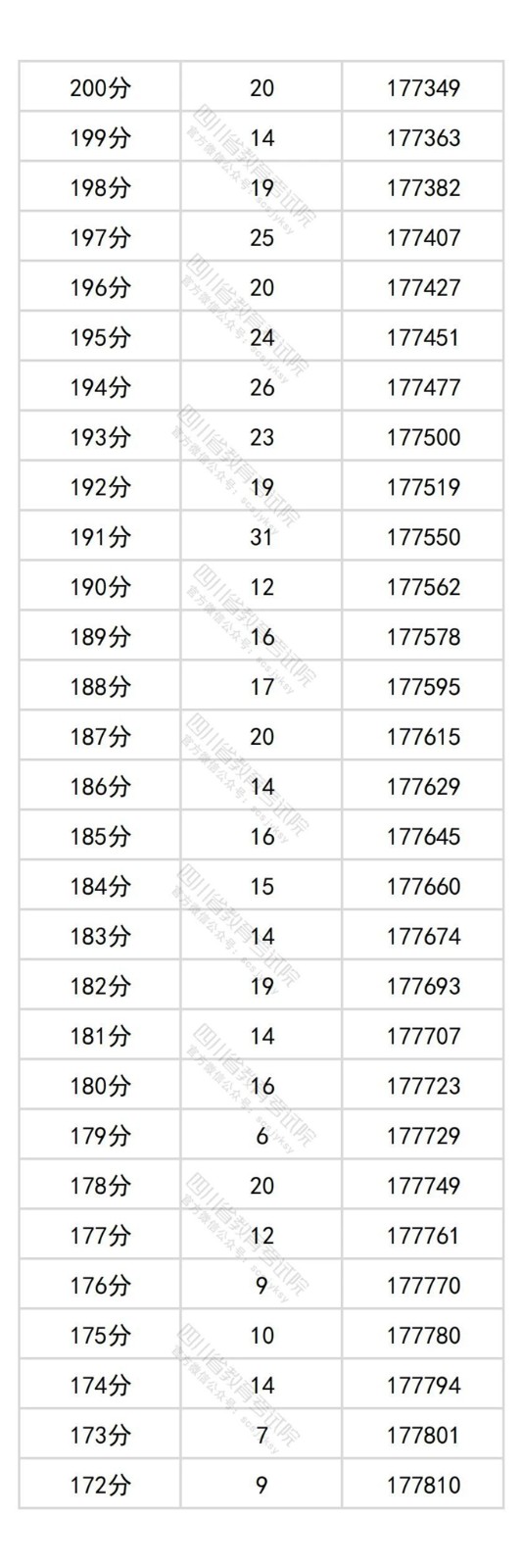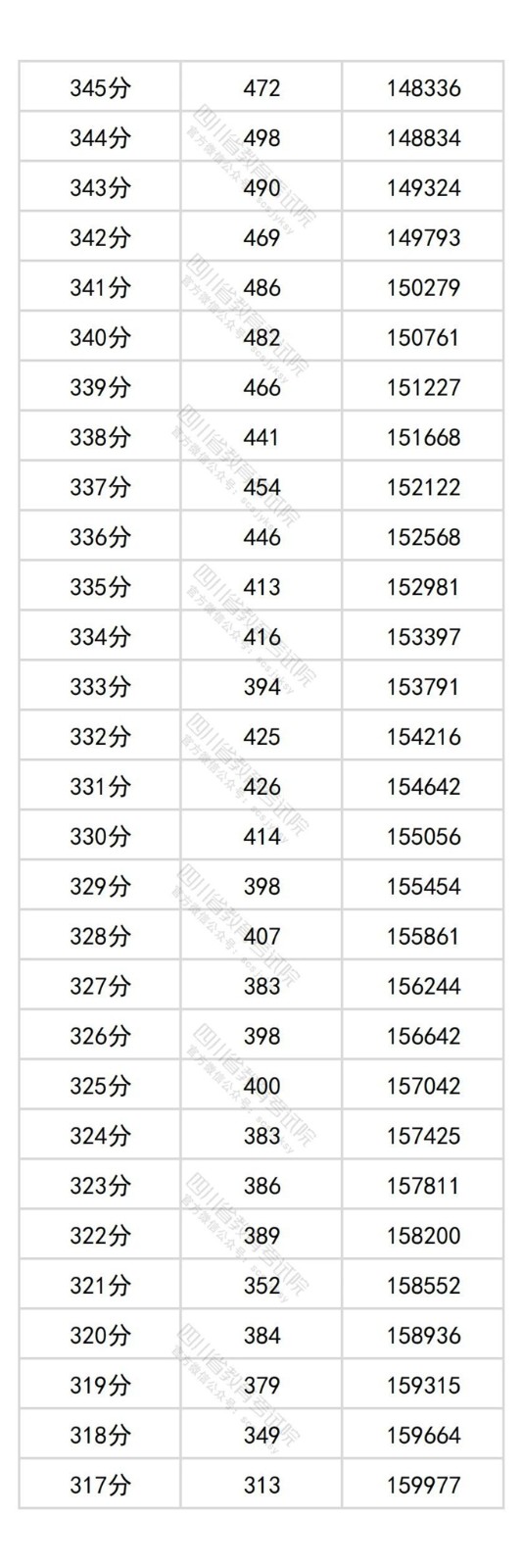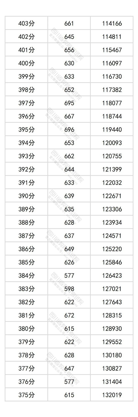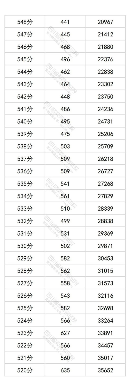 四川省2025年普通高考历史类成绩分段统计表