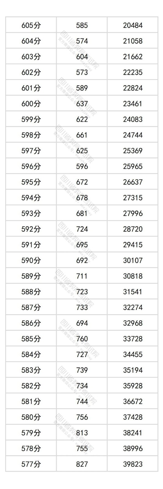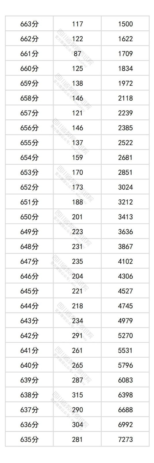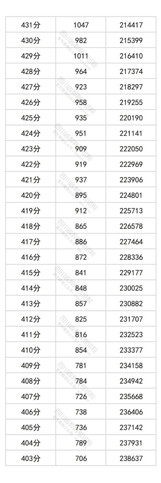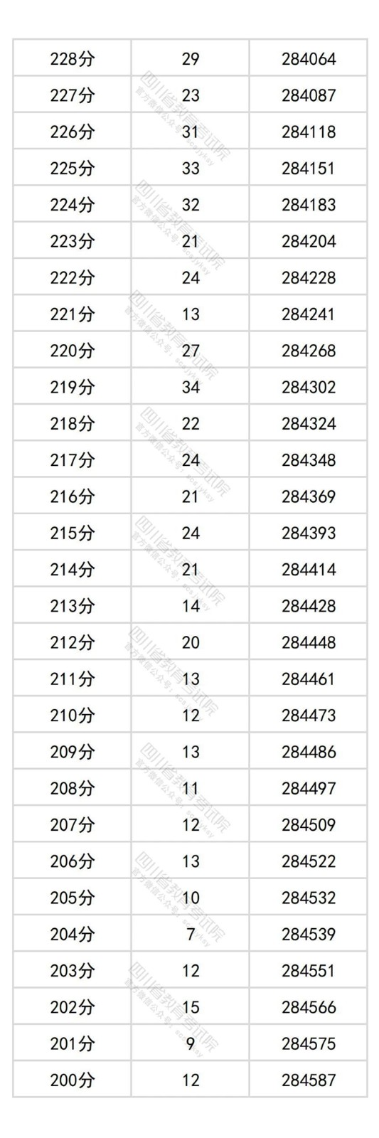 四川省2025年普通高考物理类成绩分段统计表