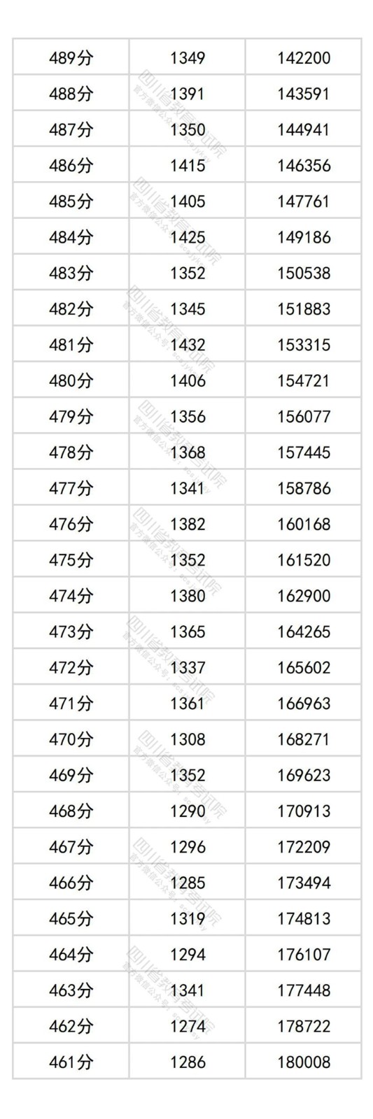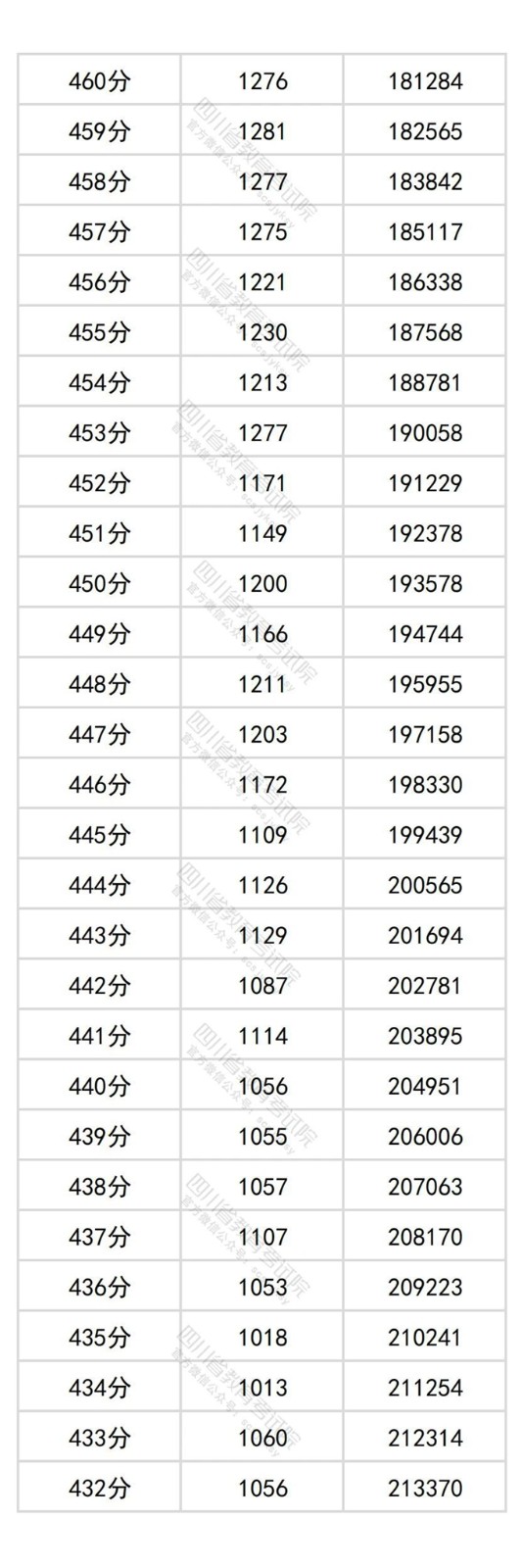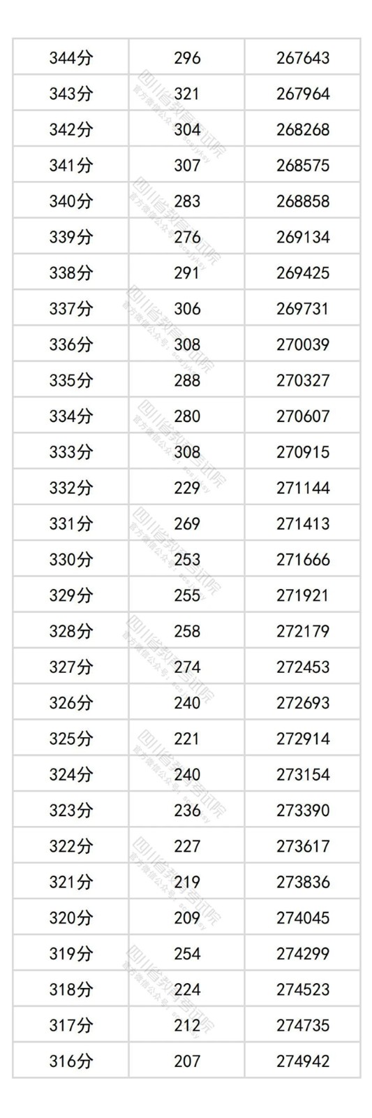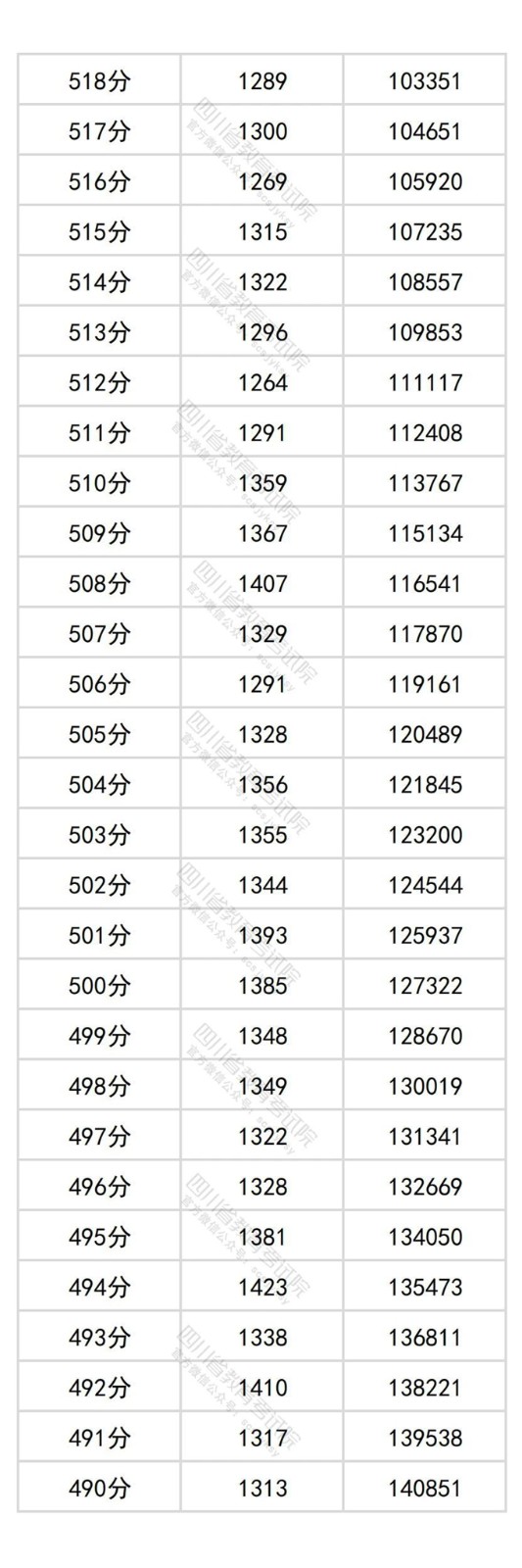 四川省2025年普通高考物理类成绩分段统计表